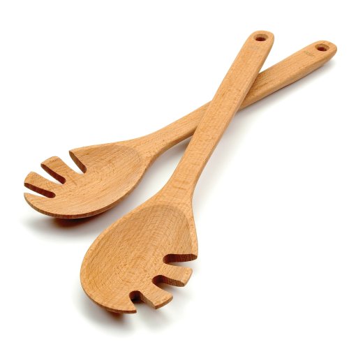 Get back to your roots with the OXO Good Grips Wooden Salad Servers. Made of solid beech wood, these sturdy Salad Servers are comfortable and durable. The large, contoured handles and flared tines make it easy to toss or lift salad at any angle. The solid side of the head is perfect for scooping up vegetables, fruits, croutons and more. These tools are not recommended for use in the dishwasher.You will not be disappointed with